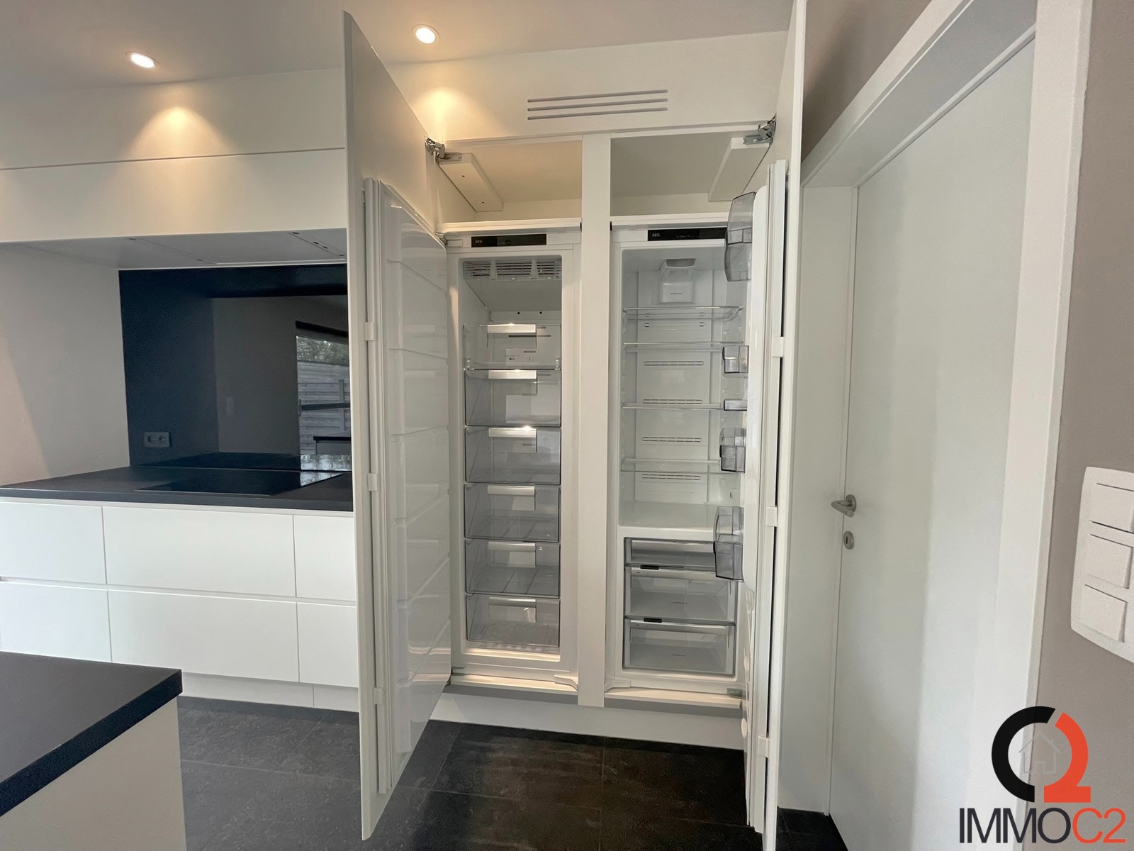 + volledig geïnstalleerde open keuken uitgerust met AEG kwaliteitstoestellen met aangebouwde tafel