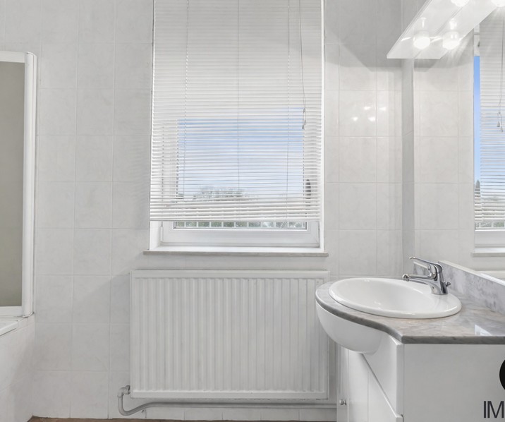 + Badkamer met enkelvoudig lavabomeubel, ligbad met douchemogelijkheid en toilet