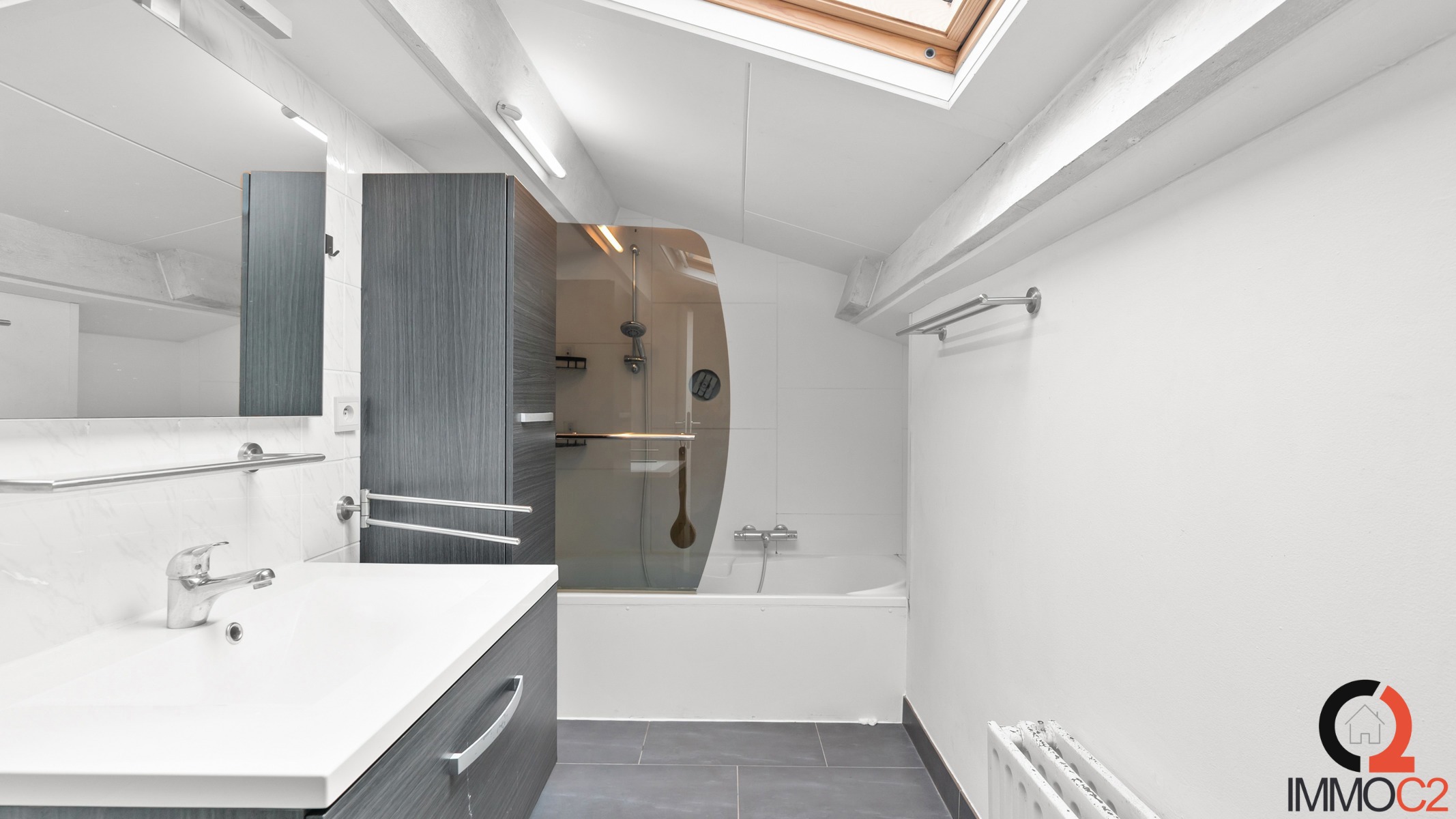 + Recent vernieuwde badkamer met inloopdouche en dubbel lavabomeubel, apart hoekje voorzien voor wasmachine en droogkast