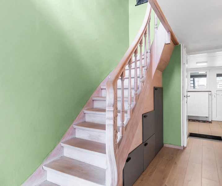 + Ruime inkomhal met ingemaakte kastenwand en kastruimte onder de trap