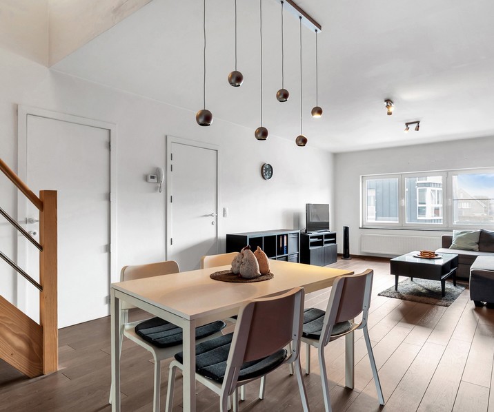 Instapklaar en energiezuinig duplex appartement met groot terras gelegen in het centrum van Leopoldsburg, bestaande uit: