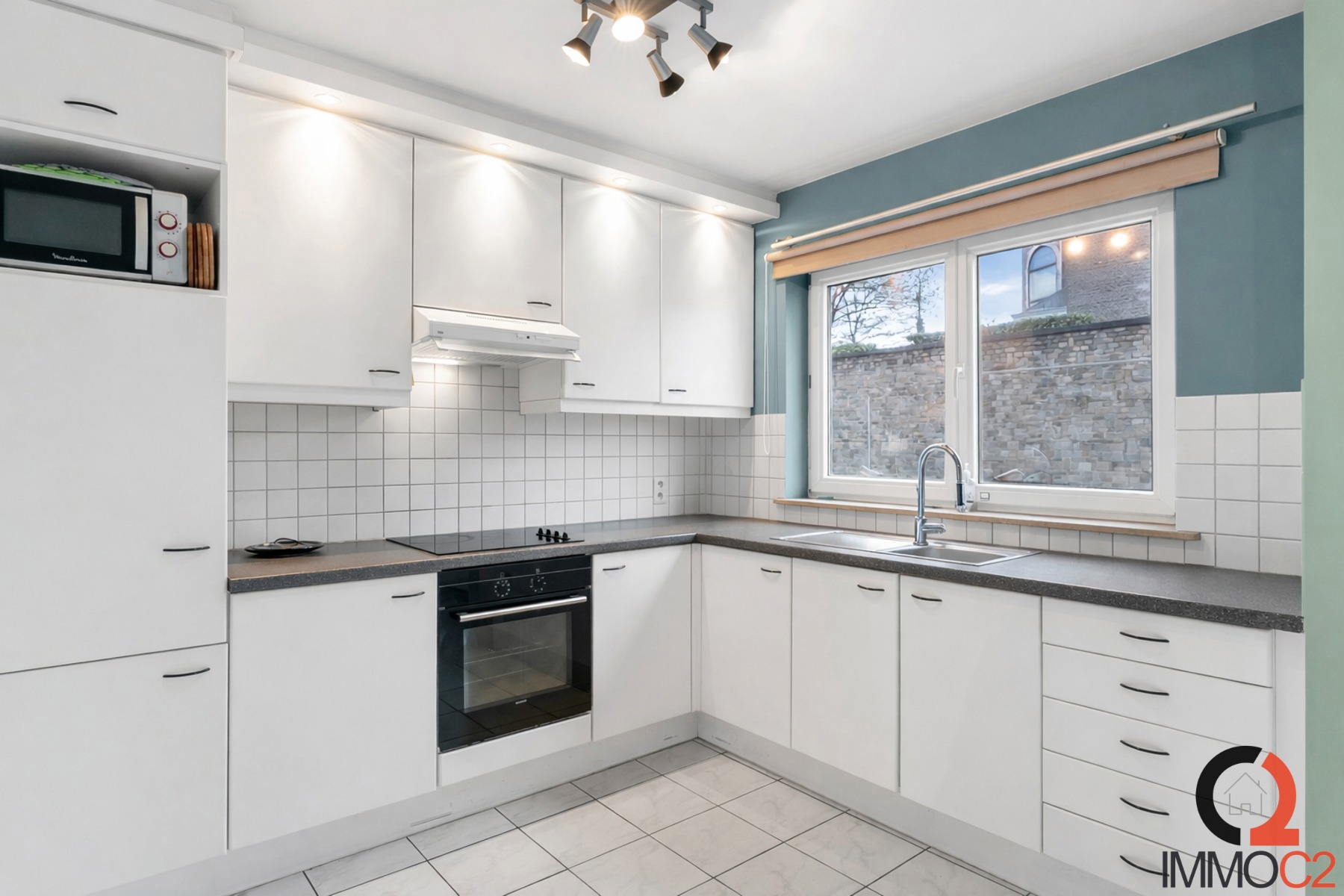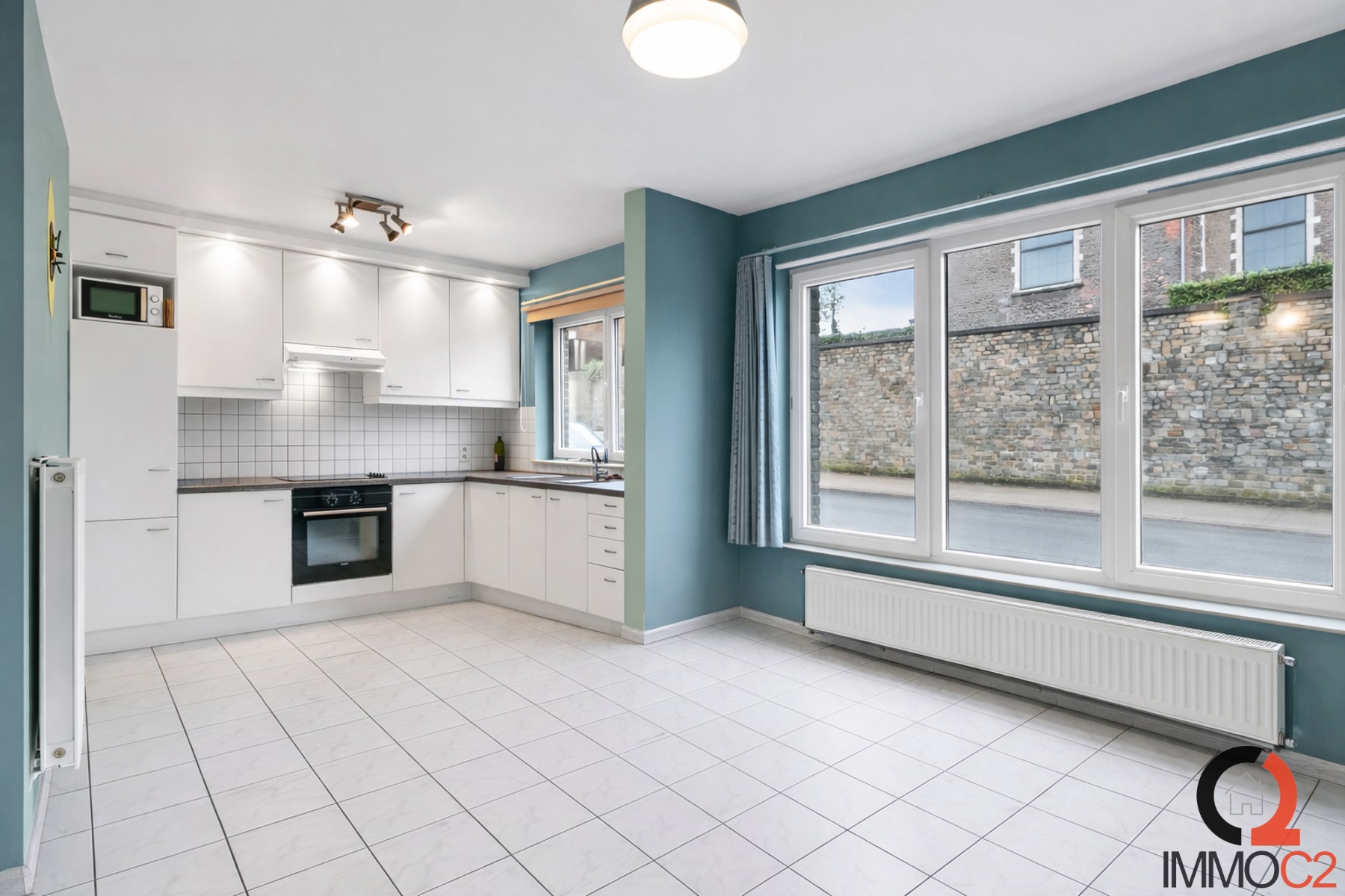 + Geïnstalleerde open keuken (koelkast, oven, keramische kookplaat en afzuigkap)
