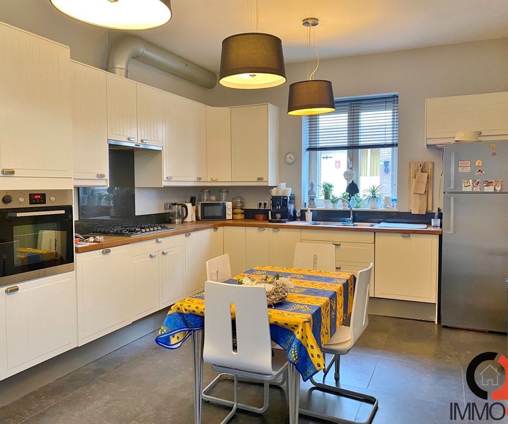 De woning werd volledig gerenoveerd met hoogwaardige materialen en heeft een bewoonbare oppervlakte van +/-150m². De woning bestaat uit:
