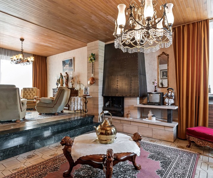 + Leefruimte bestaande uit verlaagde zithoek met haardvuur en eethoek met