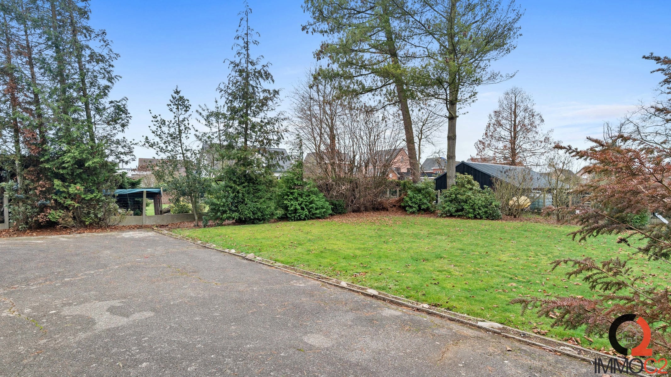 Aangelegde voor - en achtertuin met geasfalteerde oprit.